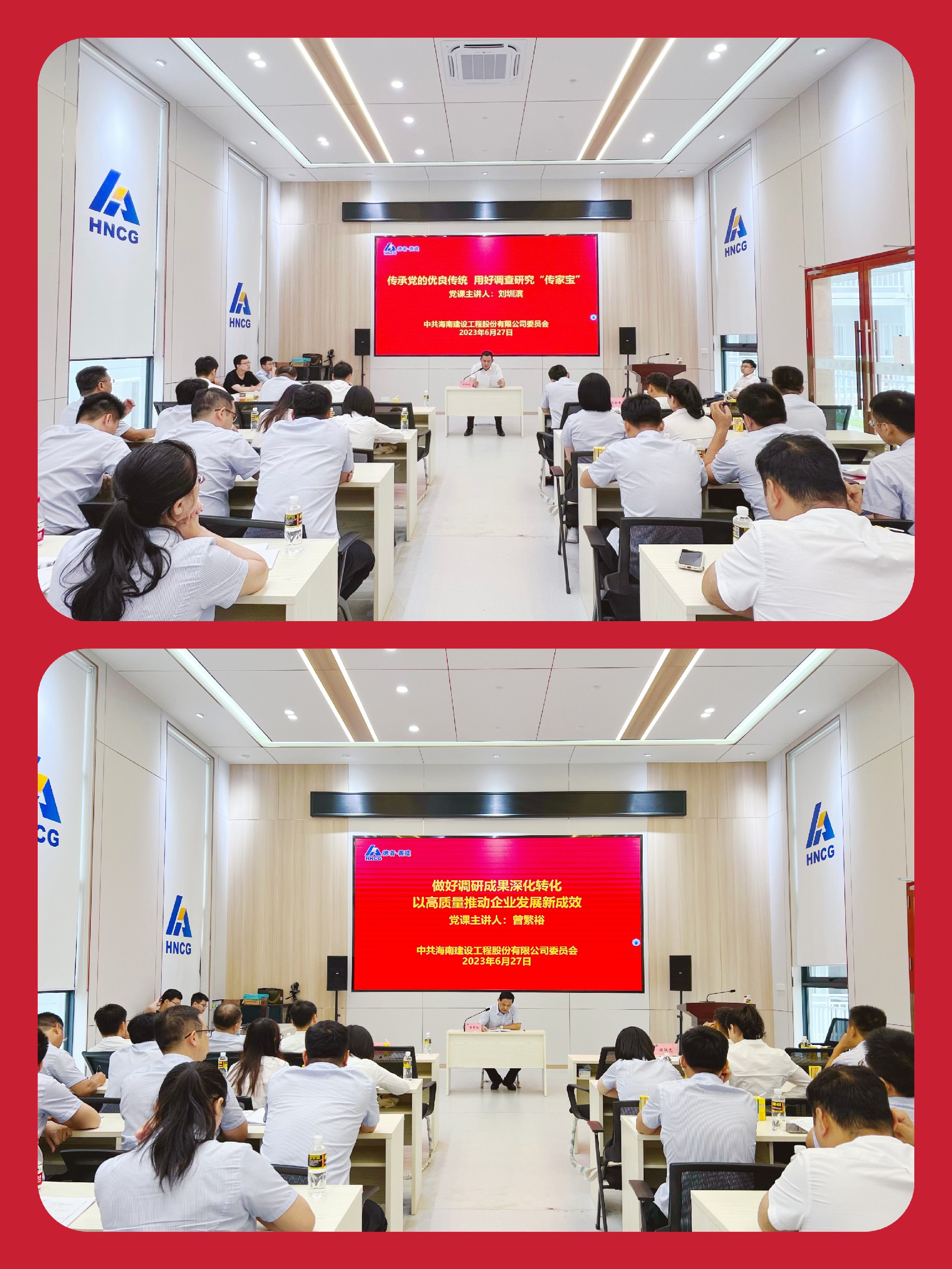 在海南大學(xué)觀瀾湖校區(qū)教學(xué)及生活服務(wù)設(shè)施(二期)項(xiàng)目部,開展學(xué)習(xí)貫徹習(xí)近平新時(shí)代中國(guó)特色社會(huì)主義思想主題教育進(jìn)項(xiàng)目宣講活動(dòng),全體黨員及項(xiàng)目部人員一同觀看了由石國(guó)亮教授主講的《習(xí)近平新時(shí)代中國(guó)特色社會(huì)主義思想工作方法》視頻輔導(dǎo)報(bào)告,浙江“千萬(wàn)工程”案例視頻介紹。隨后,公司黨委書記劉圳濱結(jié)合當(dāng)前黨建工作實(shí)際,講了一堂題為《傳承黨的優(yōu)良傳統(tǒng),用好調(diào)查研究“傳家寶”》的黨課,公司黨委副書記、總經(jīng)理曾繁裕結(jié)合當(dāng)前重點(diǎn)工作內(nèi)容,講了一堂題為《做好調(diào)研成果深化轉(zhuǎn)化,以高質(zhì)量推動(dòng)企業(yè)發(fā)展新成效》的黨課。黨課結(jié)束后,大家紛紛表示,黨日活動(dòng)主題鮮明、內(nèi)容豐富、啟發(fā)性強(qiáng),對(duì)大家準(zhǔn)確把握習(xí)近平新時(shí)代中國(guó)特色社會(huì)主義思想的重大意義和核心要義有極大的幫助,今后將持續(xù)在深學(xué)細(xì)悟篤行中提高理論修養(yǎng)、堅(jiān)定理想信念、升華覺(jué)悟境界、增強(qiáng)能力本領(lǐng),以實(shí)際行動(dòng)助力企業(yè)高質(zhì)量發(fā)展,在新時(shí)代新征程中展現(xiàn)更大作為。
